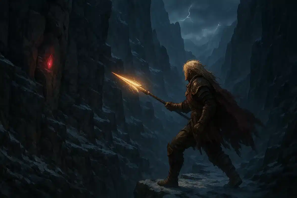 • Punto de Inicio: Comienza en el Nexo de la Hoja del Cañón de Hielo (Ice Canyon Blade Nexus). Este punto se alcanza después de la segunda prueba de arma (donde obtienes la Lanza).