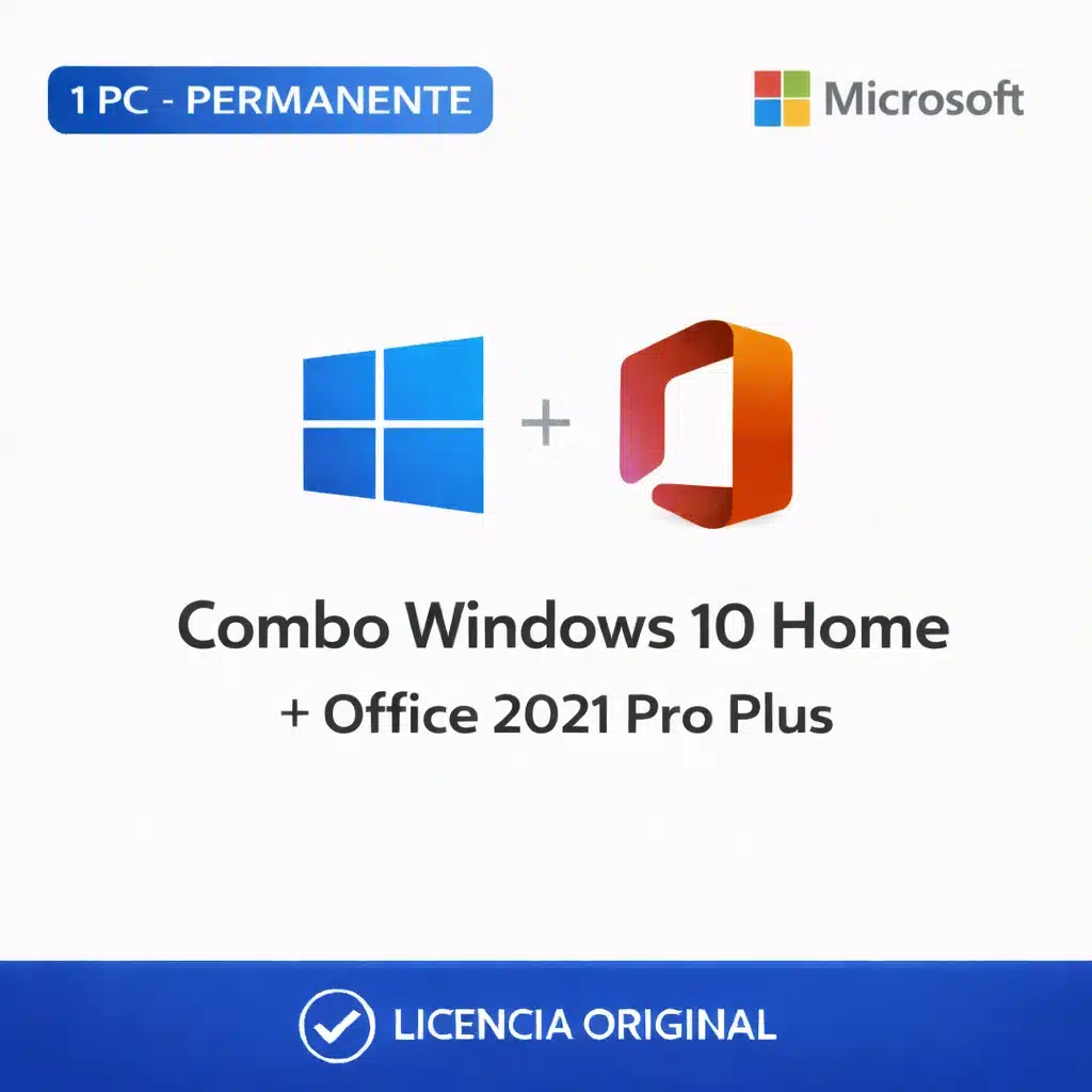 Combo Windows 10 Home + Office 2021 Pro Plus – 1 PC – Licencia Permanente