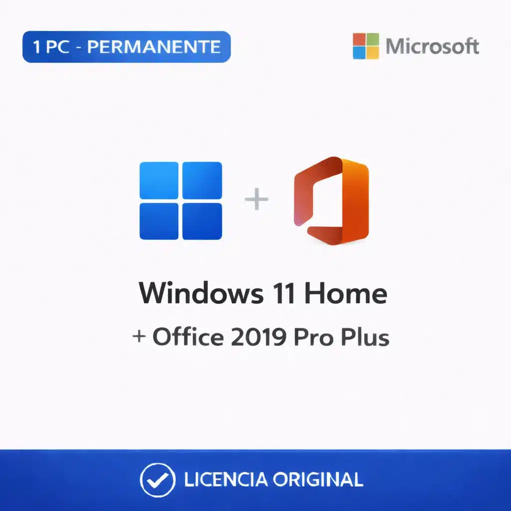 Combo Windows 11 Home OEM + Office 2019 Pro Plus — Permanente — 1 PC — 2 Licencias (Licencia digital)
