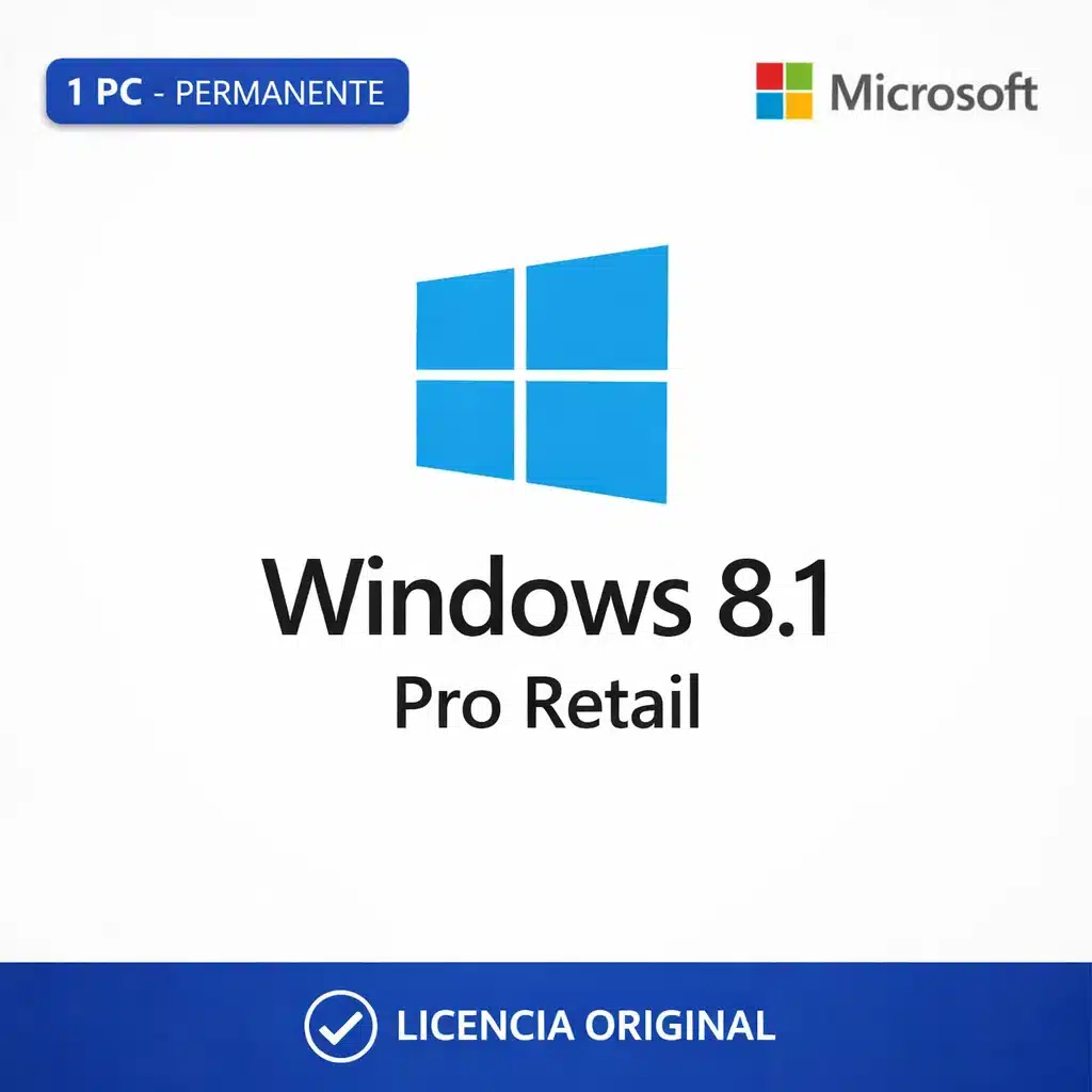 Sistema operativo para PC con enfoque en productividad y funciones profesionales. Windows 8.1 Pro es útil si necesitás compatibilidad con software o hardware específico de esa generación y herramientas típicas de entorno laboral. Importante: es una versión sin soporte vigente de Microsoft, por lo que no recibe actualizaciones de seguridad.