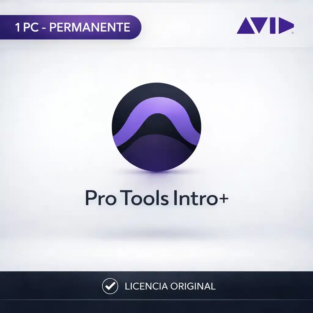 Pro Tools Intro+ es una edición especial de Pro Tools orientada a producción musical, con herramientas de grabación, edición y mezcla, además de flujo de trabajo MIDI. En algunos bundles (por ejemplo, con hardware Focusrite calificado) se entrega como licencia perpetua y se canjea mediante cuentas Focusrite/Avid e iLok. Esta publicación corresponde a 1 PC (según la modalidad indicada).