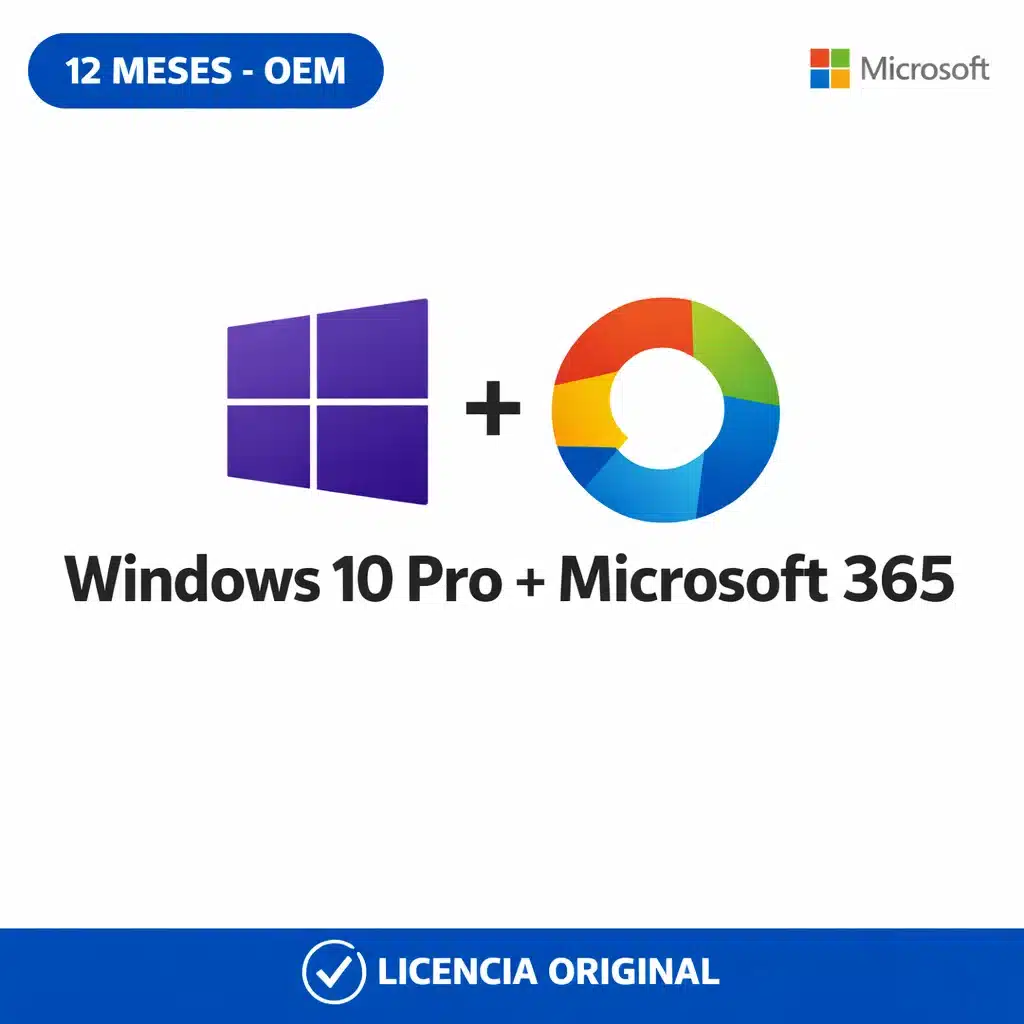 Combo Windows 10 Pro OEM + Microsoft 365 Profesional — 12 Meses — 1 Cuenta Nueva + 1 PC (Licencia digital)