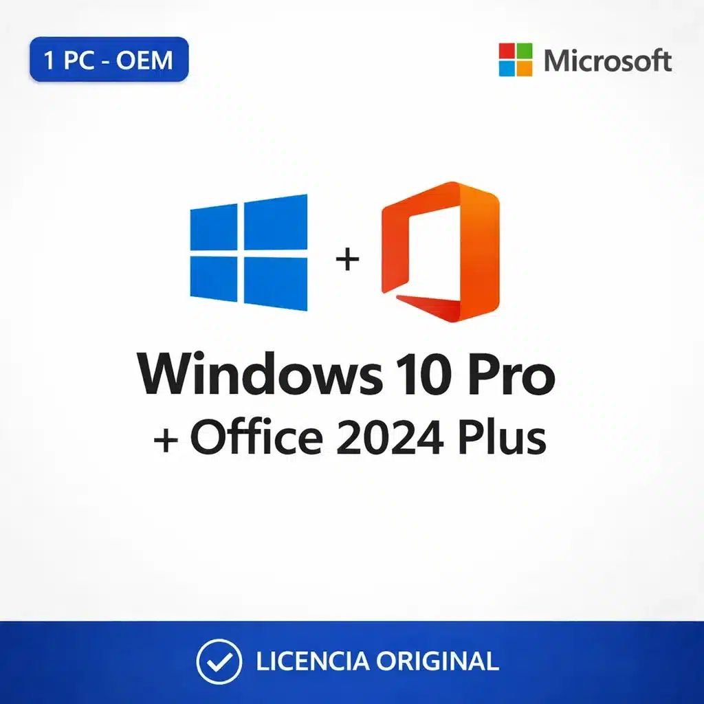 Combo para instalar y activar en 1 PC: Windows 10 Pro + Office Professional Plus 2024 (edición LTSC Professional Plus 2024). Ideal para productividad diaria con apps de escritorio y funciones “Pro” orientadas a trabajo y administración. Se entrega por correo con la información de activación y enlaces oficiales cuando corresponda.