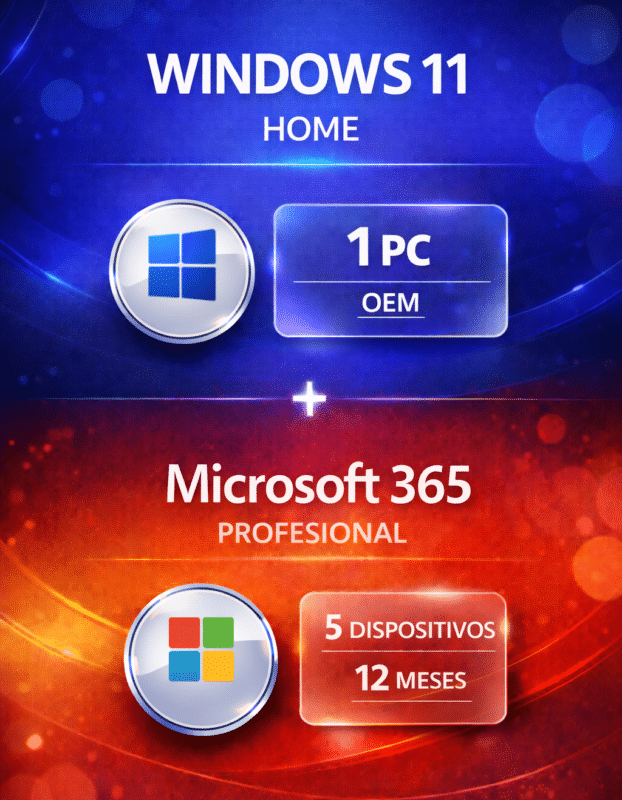 Combo Windows 11 Home + Microsoft 365 Profesional — 12 Meses — 1 Cuenta Nueva + 1 PC (Licencia digital)