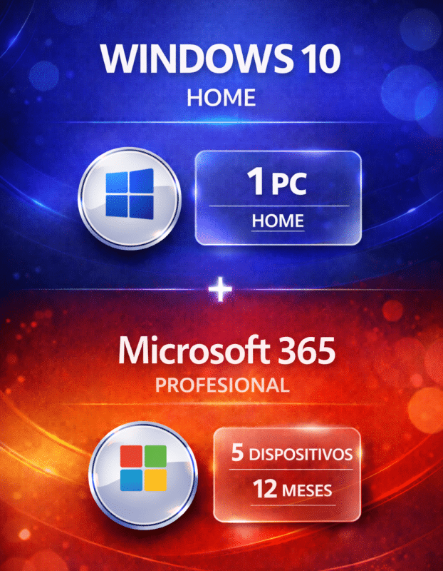 Combo Windows 10 Home + Microsoft 365 Profesional — 12 Meses — 1 Cuenta Nueva + 1 PC (Licencia digital)